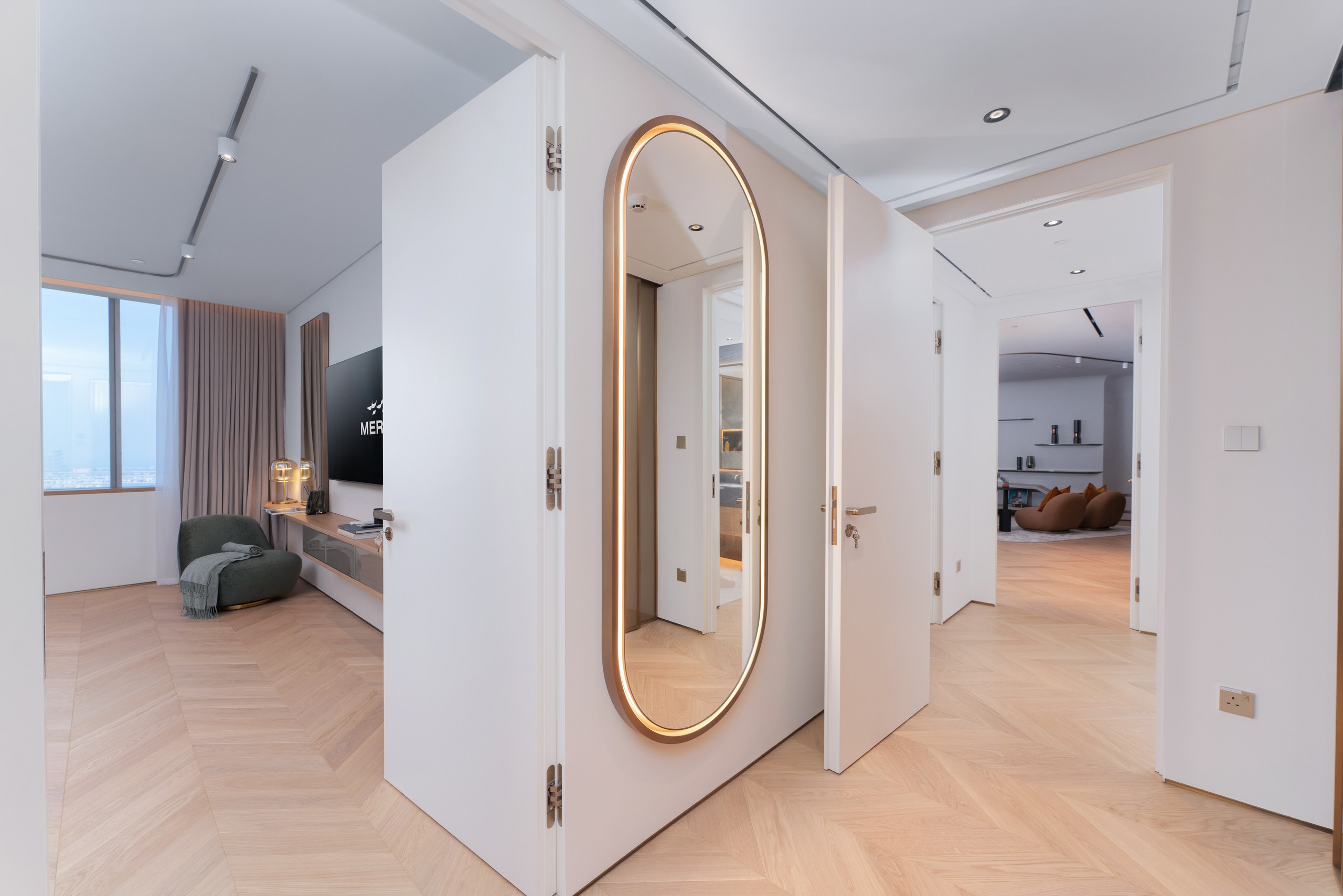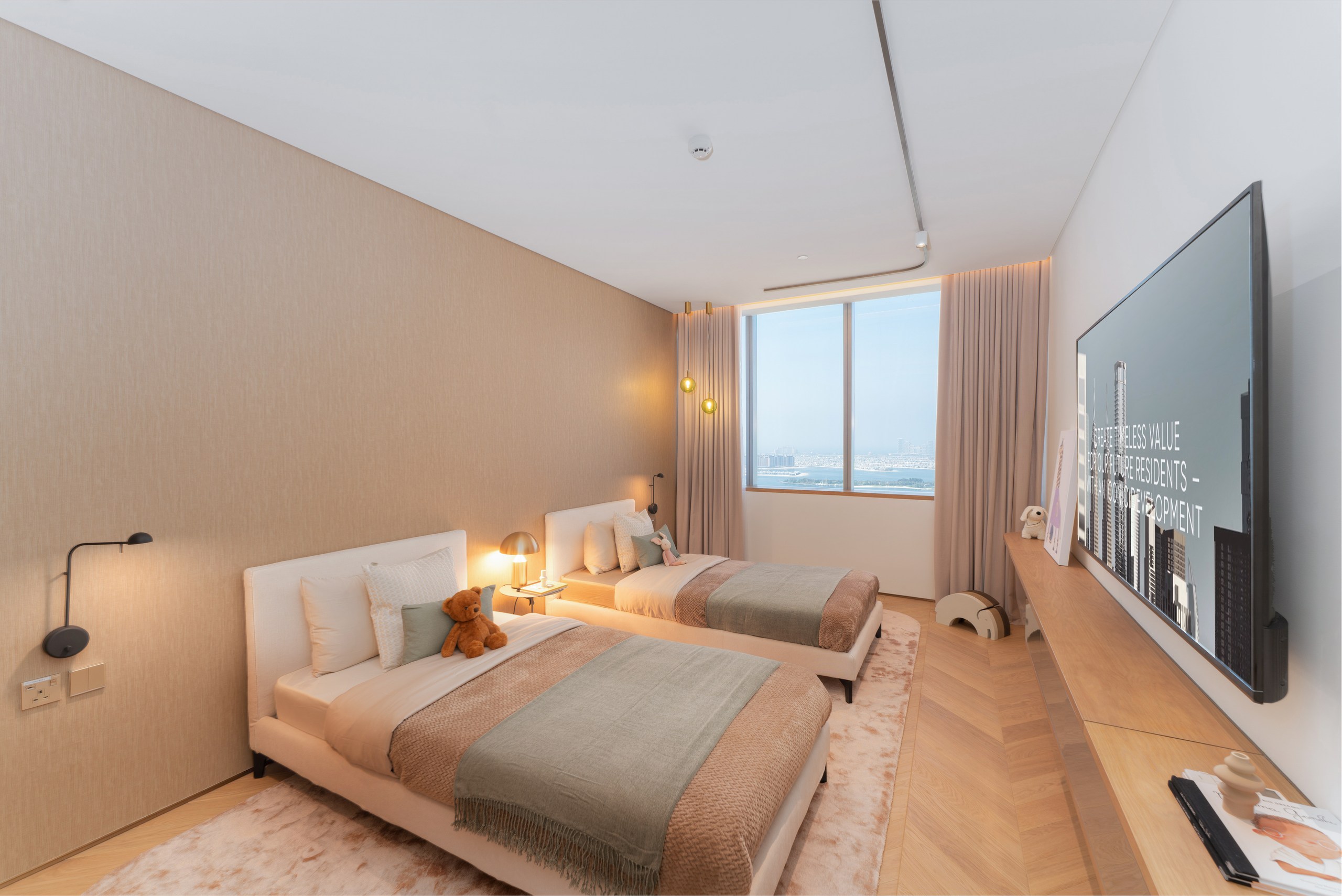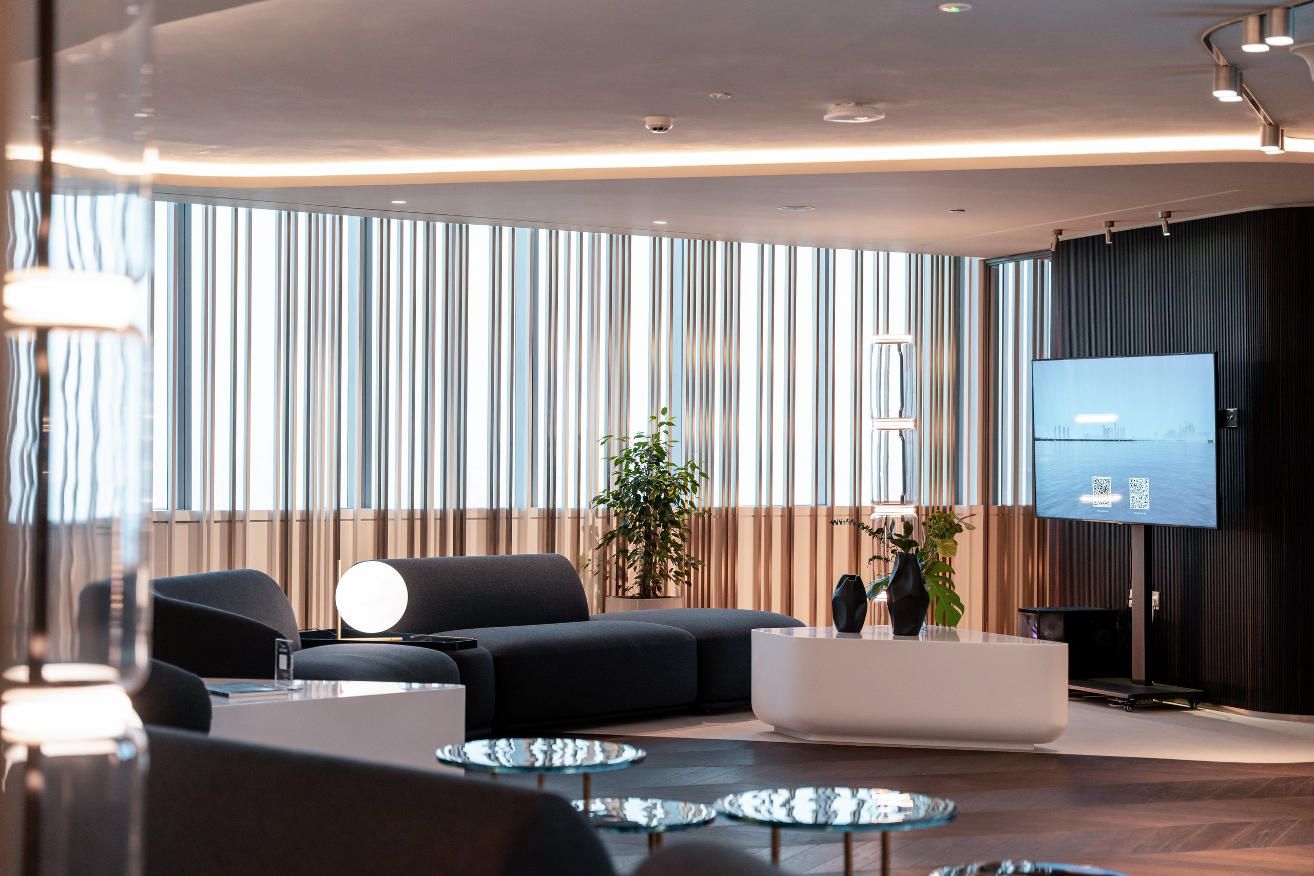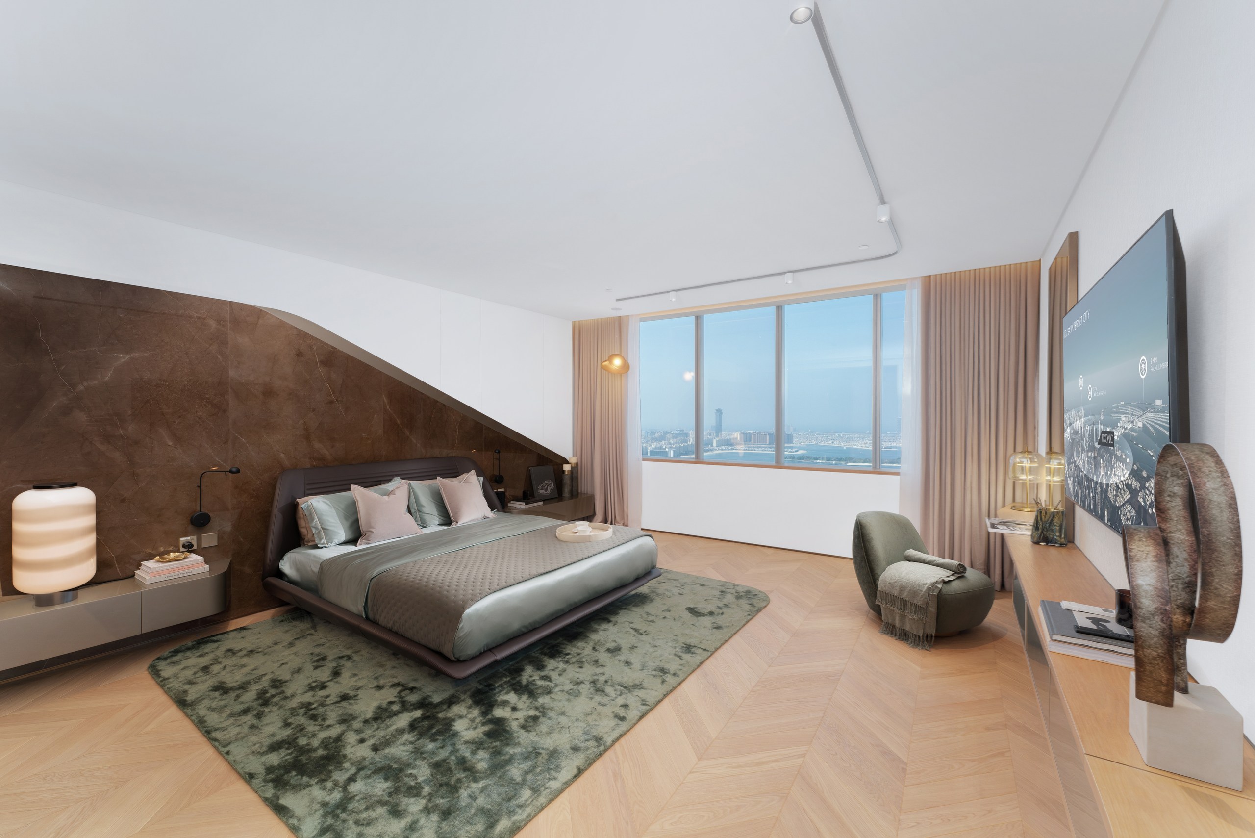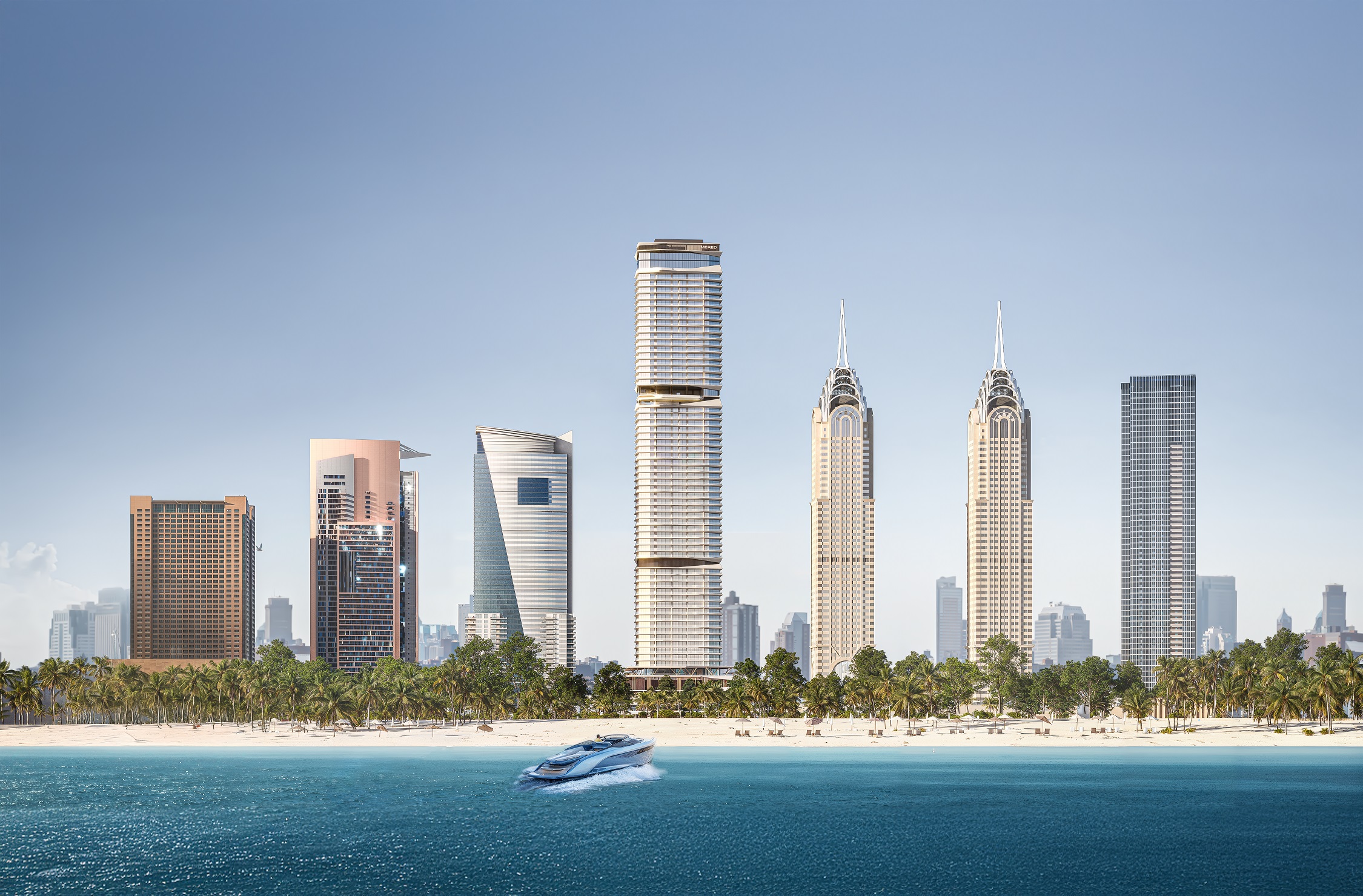 Two dedicated amenity levels—Oasis (pools, gym, cinema) and Sky (infinity pool, ice spa, lounge)—plus 423 parking bays and VIP A/C boxes. Starting from AED 2.5 M for a 1 BR with panoramic views of Palm Jumeirah, Burj Al Arab, Burj Khalifa, and Dubai Marina, this is waterfront luxury redefined.